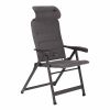 Kompakter Campingstuhl mit gepolstertem Stoff und Beinen aus epoxidbeschichtetem Aluminium. Rückenlehne 7-fach verstellbar mit ausziehbarem Kopfteil für mehr Komfort.