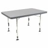 Die Tische sind einfach zu bedienen und absolute Leichtgewichte. Die Tischplatte ist mit einem pulverbeschichteten Aluminiumprofil verstärkt und daher sehr stabil. Die Platte ist zudem wetterfest, hitzebeständig und sehr einfach zu reinigen. Farbe: Tischplatte hellgrau, Kante anthrazit.