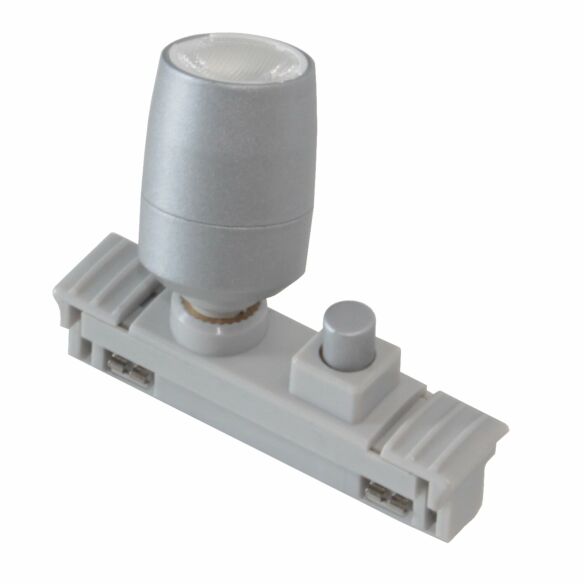 Spot mit Schalter, der zu verwenden ist, wenn die Schiene ständig mit Strom versorgt wird, z. B. wenn ein 2-A-USB-Anschluss an der Schiene angebracht ist.