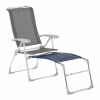 Campingstuhl aus Aluminium-Rundrohr, 8-fach verstellbare, hohe Rückenlehne.