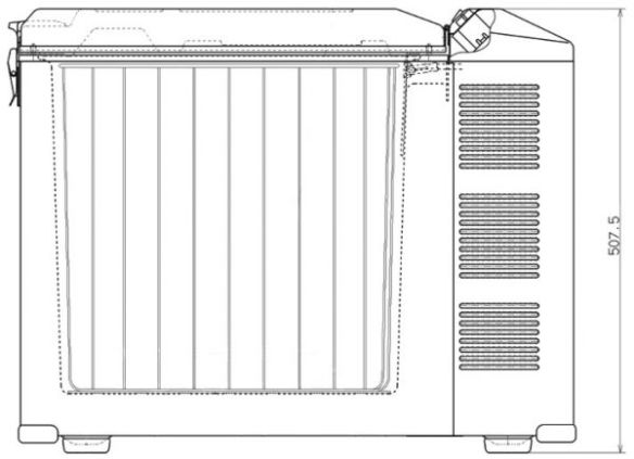 1/3 mehr Inhalt durch außerhalb des Kühlfaches angebrachten Kühlaggregates