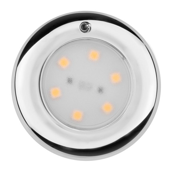 Spannung 12 V Leistung 1 W Energieeffizienzklasse A+ Farbe chrom Schalter ? Ausrichtung Einbau Maße (? x H) 70 × 15 mm Gewicht 32 g