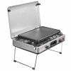 Für Camping, Picknick und Terrasse. Zweiflammkocher und Grill im schönen Design mit emailliertem Rost und antihaftbeschichteter Grillschale. Mit zwei leistungsstarken 2,5-kW-Brennern, Piezozündung und 80 cm Anschlussschlauch im integrierten Staukasten des eleganten, pulverbeschichteten Koffers mit Tragegriff. Verbrauch: 190 g/h je Brenner bei Vollbrand; 65 g/h je Brenner bei Kleinbrand (Grilleinstellung).