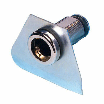 Hülse aus Metall. Abdeckringfarbe schwarz mit Verdrehschutzplatte und Kontermutter.