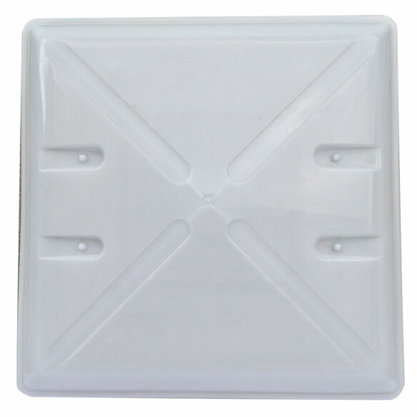 Milchglas- Außenhaube mit großem Überstand mit Schnee- und Spritzschutzkante Teleskop-Aussteller, vierseitig aufstellbar, mit Verriegelung abklappbarer Netzrahmen