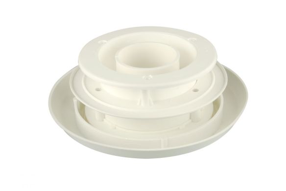Beschreibung mit ø 60 mm Schlauchanschluss Montageausschnitt ø 110 mm Haubengröße 190 mm Material Aluminium, Polypropylen Dachstärke 20 ? 45 mm Farbe weiß Maße (? x H) 190 × 90 mm Gewicht 195 g