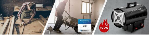 Gasheizgbläse mit 15 kW Heizleistung zur effektiven Beheizung auch größerer, gut belüfteter Räume