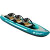Die 3 verstellbaren Sitze können herausgenommen werden, wodurch aus dem 3-Personen-Kajak ein 2-Sitzer wird. Durch das Easy Inflation System mit speziellem Manometer werden die 3 Luftkammern gleichzeitig und ohne Unwucht aufgepumpt. Angeschweißte Spurprofile, eine abnehmbare Finne und der extra stabile Tarpaulin Boden sorgen für hervorragende Fahreigenschaften und Stabilität. Maße 375 x 93 cm, Tragfähigkeit 210 kg, Gewicht 19 kg.
