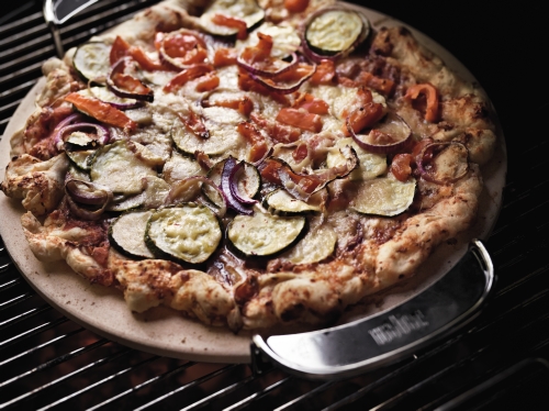 Gourmet BBQ System Pizzastein mit Gestell Ob Brot oder belegter Teig-der Pizzastein speziell für den sicheren Einsatz mit dem Gourmet BBQ System